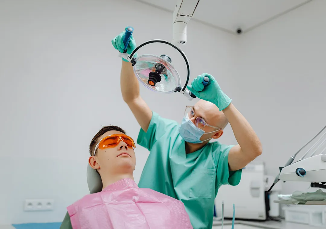 Напораженные кариесом участки наносится мощный поток воздуха счастицами специального порошка. Процедура бесшумна инетребует предварительного обезболивания